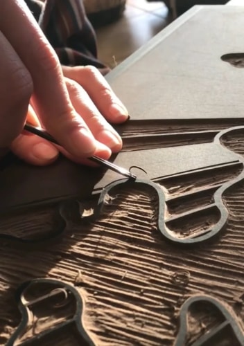 Je grave cette matière grâce à des gouges qui me permettent d’en «creuser» la surface.